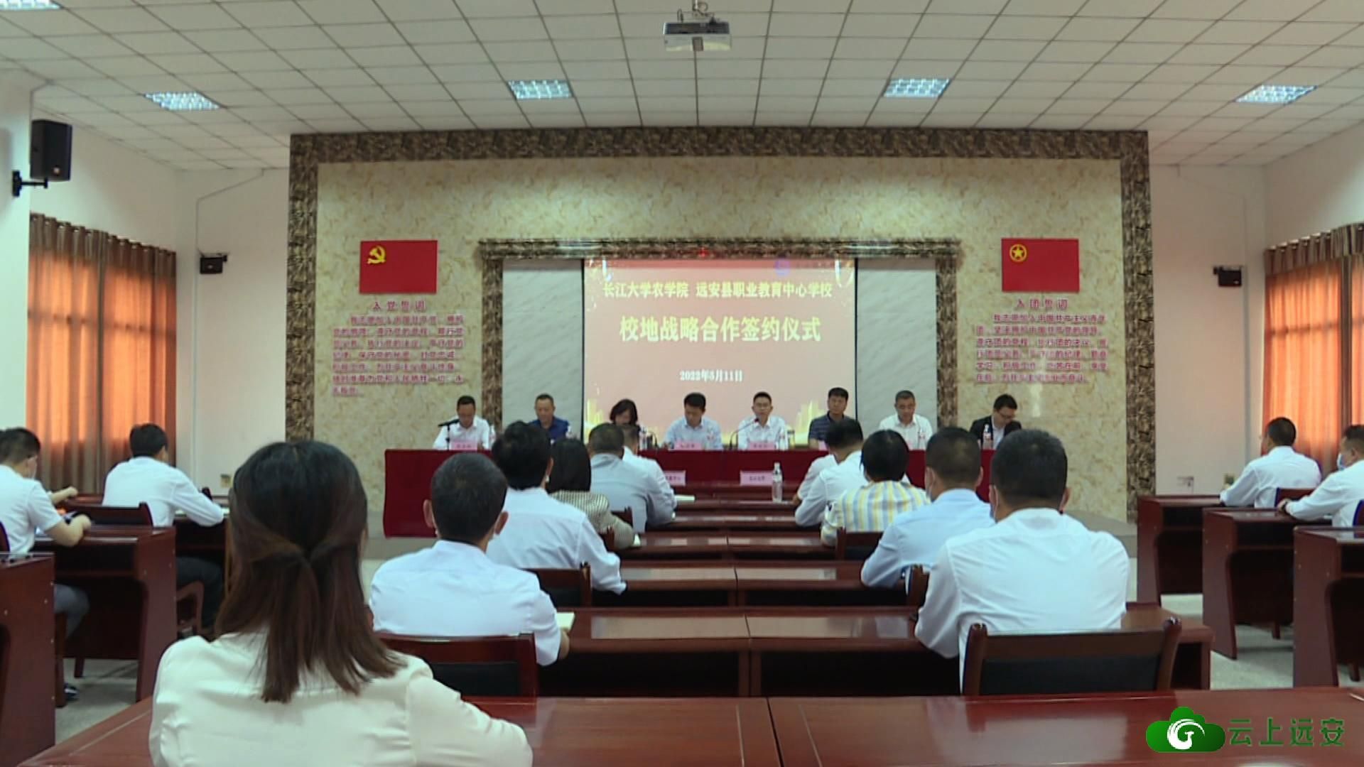 为深入推进人才强县战略,不断完善人才政策体系,助力远安高质量发展,5月11日,长江大学农学院与远安县职业教育中心学校签署校地共建战略合作协议,共谋发展。长江大学党委常委、组织部部长李应军,县委常委、宣传部部长牟永如出席签约仪式并致辞。县人大常委会副主任张敏主持签约仪式。