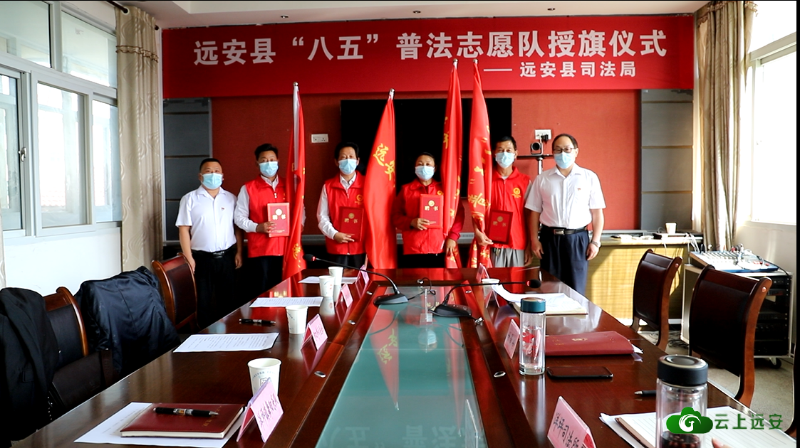 授旗仪式上,县司法局先听取了4支乐队负责人、7个乡镇司法所所长对于此项工作的意见建议,局党组副书记、副局长甘景世交流了个人看法,分别为4支乐队颁发“远安县‘八五’普法志愿队”聘书,授予“远安县‘八五’普法志愿队”旗帜。