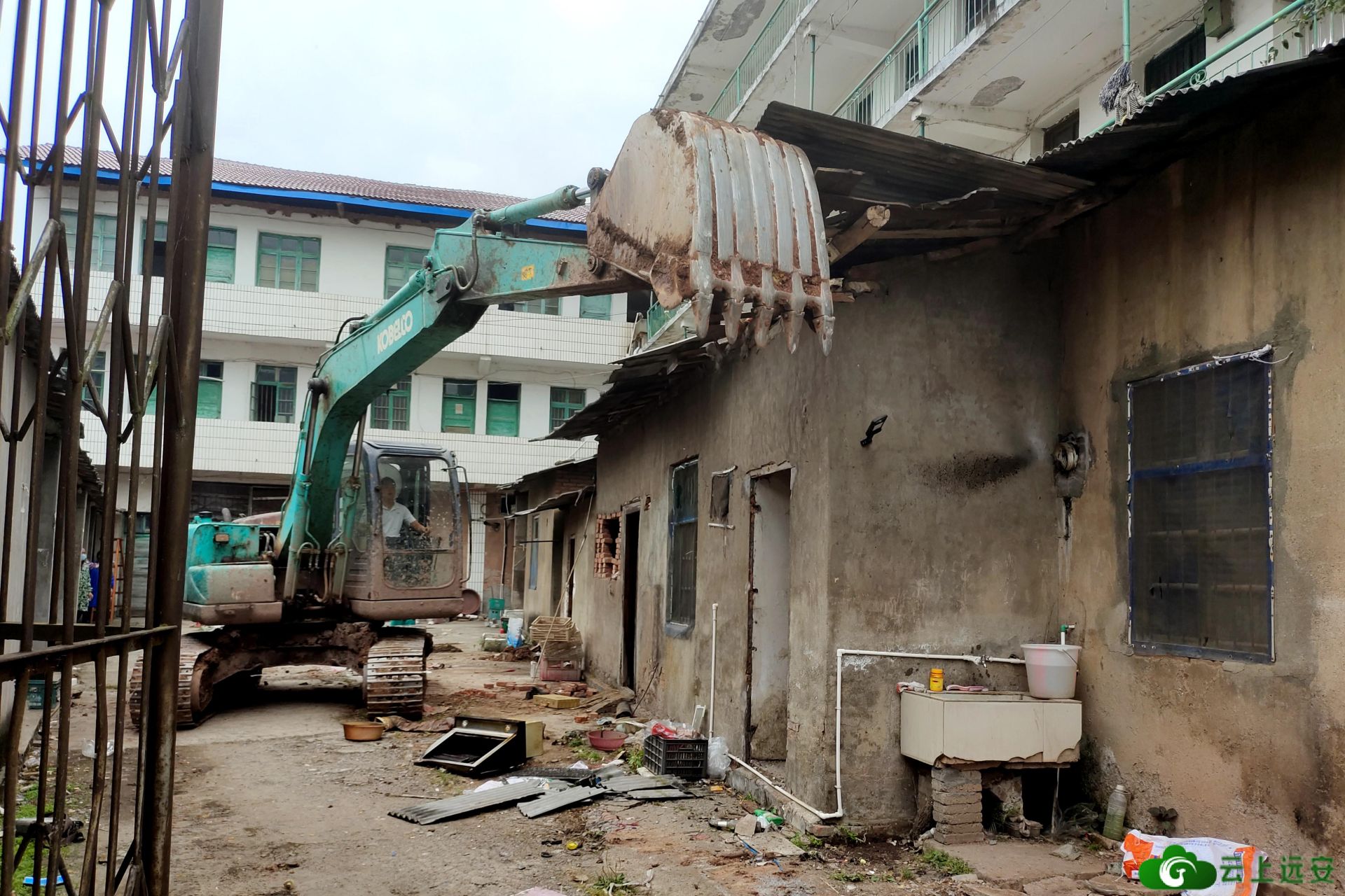 5月18日上午,随着河口乡拆违专班负责人一声令下,工作人员开始拆除河口乡原供销社230多平米的违法建筑。