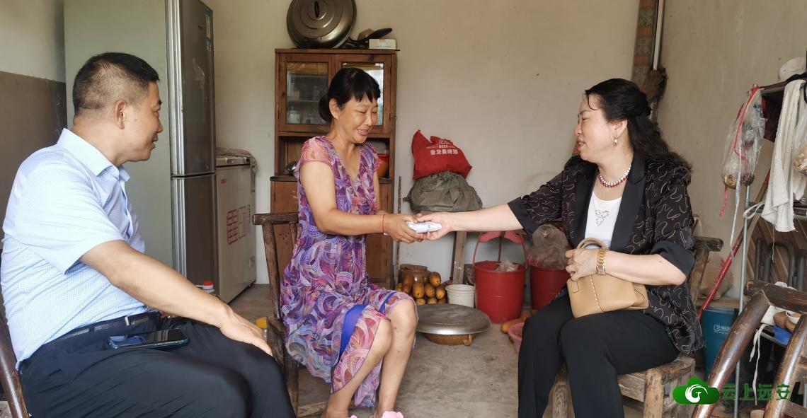 “感谢、感谢、感谢。”黄大姐接过装满厚厚一叠慰问金的信封,连连鞠躬道谢,不禁流下感动的眼泪,这感人的一幕发生在花林寺镇黄大姐家中。