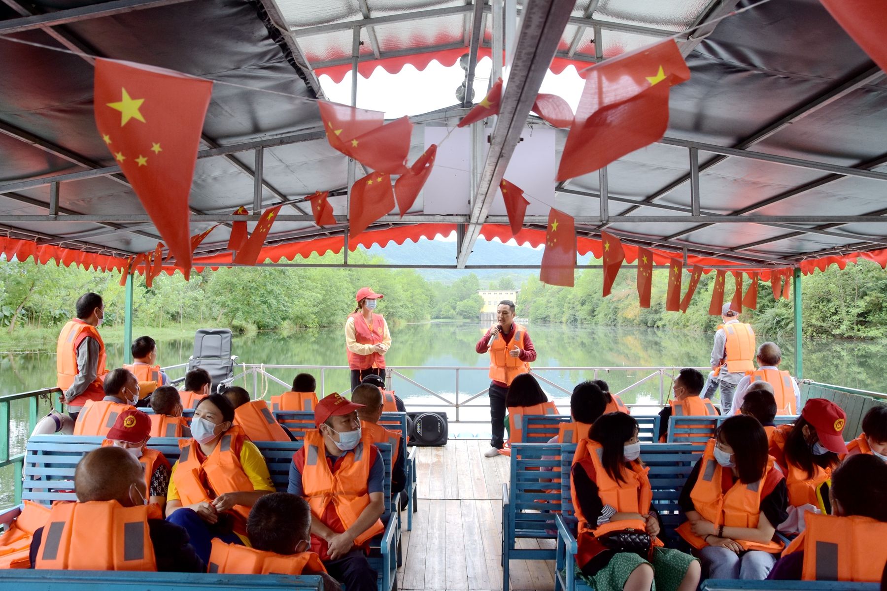 一大早,在志愿者的帮助下,40名残疾朋友走出家门来到洋坪镇回龙湾风景区,兴致勃勃地开始了游园活动。在解说员的带领下,残疾朋友们登上游船,游览两岸美景。大家逐渐打破了拘谨,在船上唱歌、跳舞,气氛融洽、热闹非凡。在欢声笑语中游船带大家来到了根雕馆,残疾朋友们一边听着讲解员的介绍,一边参观根雕、玉石等艺术品,对根雕技艺、玉石工艺赞不绝口。本次活动,让他们对非遗文化有了更深的理解,提升了文化素养。参观展览结束后,在影视城观看了一场环境保护的宣传影片,让残疾朋友们更加了解到了人与自然的关系,也加深了环境保护的意识。