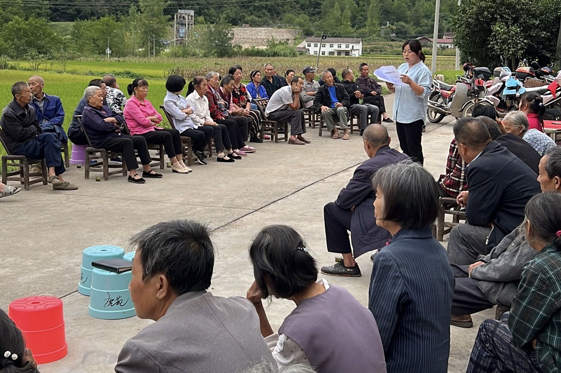 在付炜炜的召集下,一场别开生面的屋场会热闹的开了起来。会上,村两委干部充分听取群众意见,鼓励村民共同清理机耕道。村民们你一言,我一语,不仅提出了许多宝贵的意见和建议,而且也在“共同缔造”幸福生活这一理念上达成了共识。