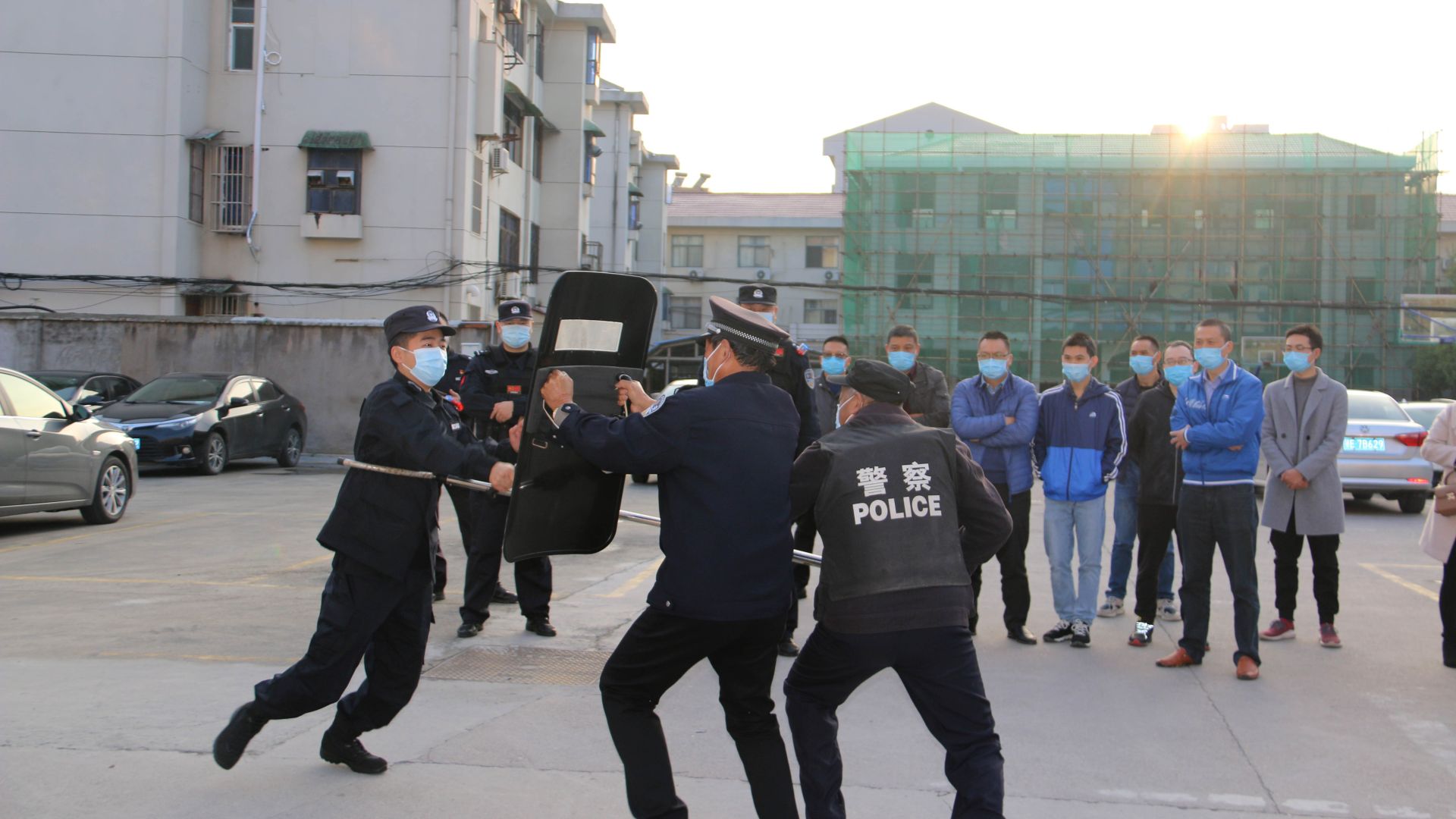 演练现场,特警大队警官首先模拟“暴恐分子”持械进入医院恶意伤人情景,正确示范利用防暴工具迅速制服歹徒的应急处置方法。随后,特警大队警官指导医院安保人员如何正确穿戴、使用钢叉、警棍、盾牌等防暴工具,传授使用技巧和动作要领,教会安保人员如何配合协作击退歹徒,提醒医护人员利用随手可得的器物,增强自身的防卫能力。