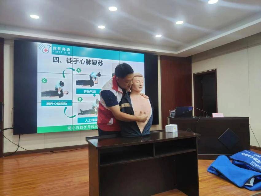 县红十字会徐同武老师通过现场实操教学,为在场听众详细讲解了遇到他人晕倒时如何展开施救,另外徐老师还介绍了海姆立克急救法,提高听众的急救知识和急救能力。