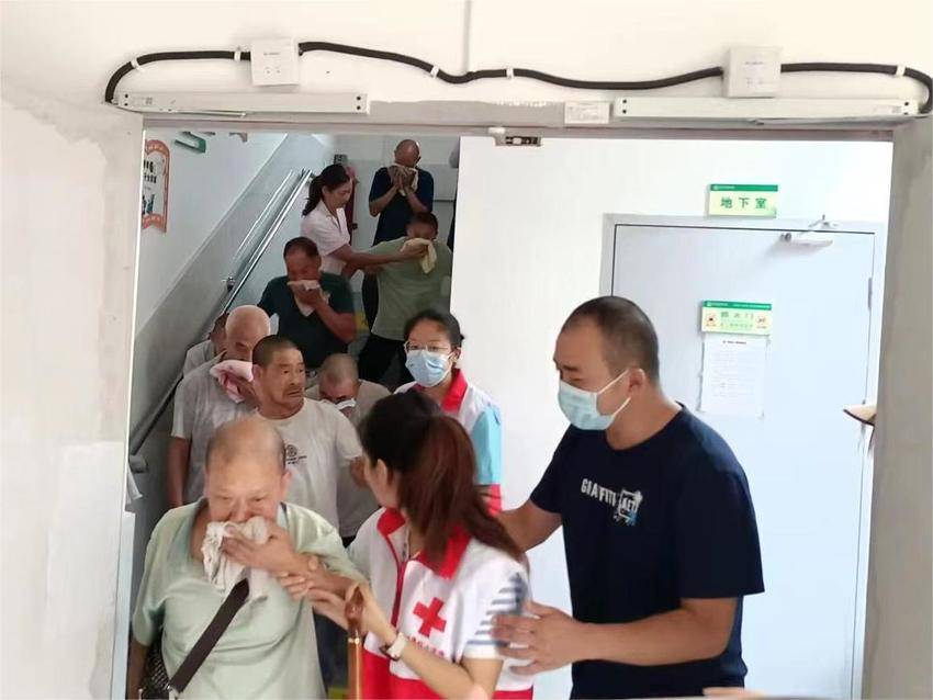 上午九点三十分,防空警报响彻县福利院内。全院立即启动应急疏散演练,奔行的队伍中透露出忙而不乱,行动不便的老人在工作人员的照护下迅速撤离大楼,整个模拟演练过程有条不紊地在3分钟内完成。