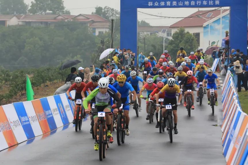 ▲图为2022年湖北省第十六届运动会群众体育类山地自行车比赛活动图