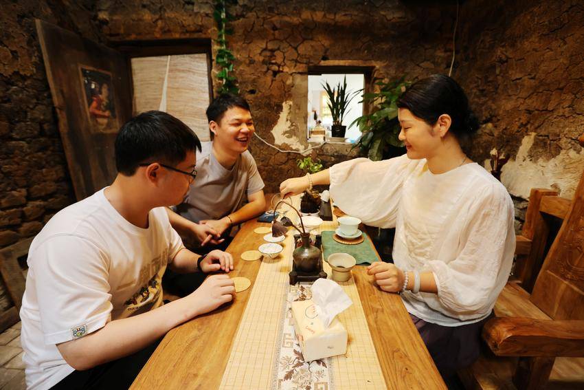 租来的土墙屋年代久远,是农场建场以来最开始修建的,因多年无人整理收拾而破烂不堪,不知道从哪里开始下手整理。好在,功夫不负有心人,确定主题之后,经过反复打造,装饰保存了土墙屋原有的风貌和特色,再加上灯具及小物件的点缀,呈现出一种安宁古朴的气息,这也是她想传达的一种气息。小店是她谋生的一种方式,也是她生活的一种态度,不急不慢,接受当下,用心生活,借茶修为,以茶养德,于是她为小店取名为“陋室”。