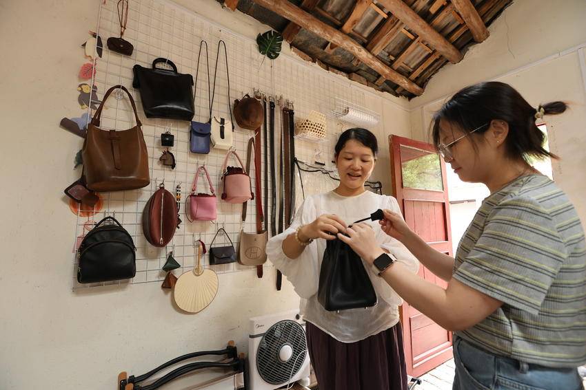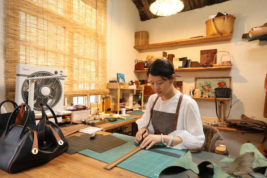 在一次和朋友的聊天中了解到,朋友正在努力以自己的方式和力量,擦亮草埠湖恢复老街农垦路的繁华,找回七八十年代的记忆。朋友说,以原来闲置的供销社地址为基点向周边慢慢延伸,先把这个点丰富、热闹起来,打卡点多了游客自然就多了,愿意来这条街开店的人就慢慢地多起来了。李婷婷心想,作为80后的自己是不是也得出一份力?于是,刚辞去工作的她决定,在沮漳供销社对面开一个小店。起初,她不知道开店该经营些什么,店铺该如何装修,经过几番思量后决定,就从她打小就喜欢的手工皮具制作做起,同时兼顾经营品茶和经销茶叶。