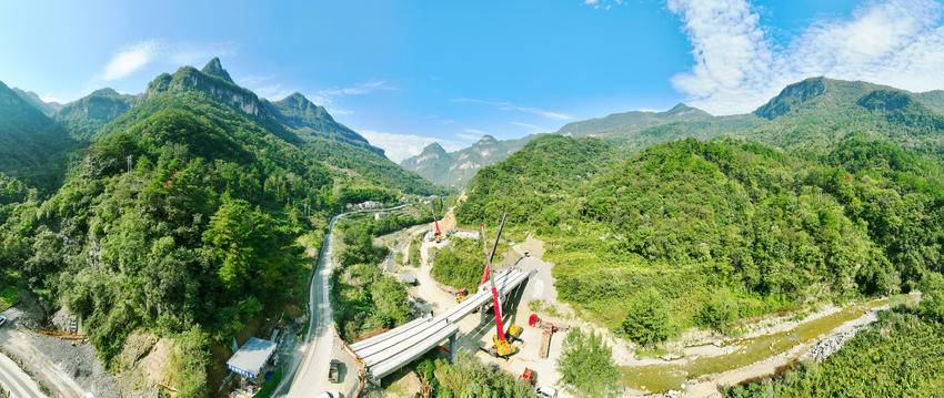 湖北日报客户端讯(通讯员侯云波)10月17日上午,天气晴好、秋高气爽,湖北远安抽水蓄能电站建设期上水库进场公路工程(龙敬段)宝华寺中桥施工现场,剩余6片箱梁吊装作业正加紧开展,预制梁装车、运输、双机起吊、安装无缝衔接,随着起重机将最后一片预制箱梁安全、平稳、精准地吊装就位,至此,12片箱梁全部吊装成功。