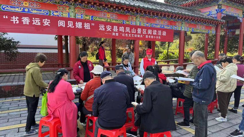 湖北日报客户端讯(通讯员刘丹、曾红阳)为深入推进全民阅读常态化开展,促进文化和旅游深度融合,10月20日,在游人如织的金秋时节,由县委宣传部和县文旅局联合主办的2023年远安县“全民阅读进景区”活动走进鸣凤山风景区,活动吸引200余人现场驻足观看。