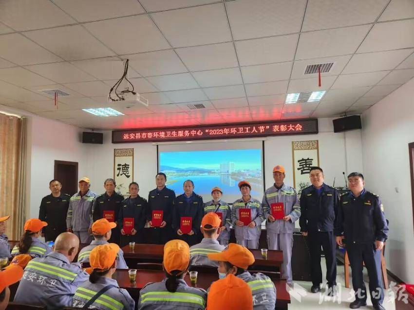 10月26日是“环卫工人节”,为弘扬环卫工人爱岗敬业、默默奉献的优良品质,远安县环卫中心举办“远安县2023年环卫工人节活动”,向长期奋斗在环卫一线的环卫工人及环卫战线上的广大干部职工致以节日的祝福和问候。 活动现场,远安县城市管理执法局党组成员、总工程师郝鹏飞为获得宜昌市“最美环卫工人”“创城先进个人”“创城先进集体”“一线环卫工人先进个人”等一批优秀个人和集体颁发荣誉证书,号召一线环卫工人、广大干部职工继续发扬“宁脏我一人、洁净千万家”的无私奉献精神,珍惜荣誉,再接再厉,进一步发挥示范带头作用,立足岗位,再立新功。