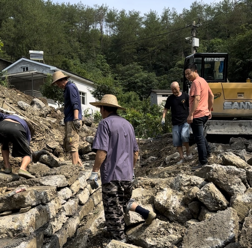 在施工过程中,村民阮联俊用自家挖机修整了前期道路堡坎,聘请农用车拖了10余车石头,附近村民一起投工投劳30余人次,做好了前期的路基堡坎,路面平整等工作,在村民的共同努力下,不到一个星期的时间,便硬化出了一条140余米的入户水泥路。