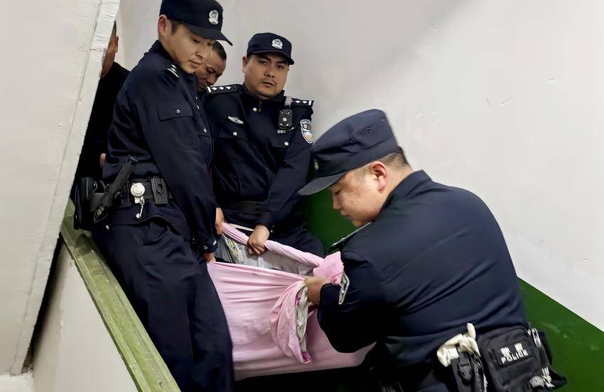 在等待120救护车的过程中,民警了解到患者周大娘今年69岁,两年前因为心梗做过手术。在救护车开进小区后,因为楼道狭窄,无法用担架转运老人下楼,鉴于周大娘病情的特殊性,医生反复强调,也不能将老人背托或者抱下楼。杨浩东等3名民警顾不上细想,直接抓起床单的边沿,将周大娘从床上抬了起来,转送下楼。