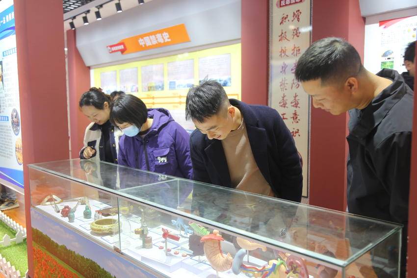 参观学*过程中,干部职工仔细阅览禁毒教育展牌,了解毒品的特征与种类、危害、禁毒历史、禁毒的国情与县情,认识到鸦片、吗啡、海洛因等9类毒品,对人的身心健康、社会交往造成极大损害。现场通过禁毒社工解说、模型展示、观看警示教育片等方式,更直观地表现了毒品的隐蔽性和极大危害性,通过县内真实典型案例介绍,深刻揭露毒品给自己、家庭、社会带来的危害,展现了近年来全县打击毒品违法犯罪的成果,让干部职工深切体会到禁毒工作的重要性。活动结束后,大家纷纷签订禁毒誓言,自觉抵御毒品侵蚀。