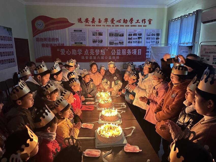 此次活动是玉华爱心助学工作室参与的远安县第六届公益创投的爱心助学点亮梦想的志愿服务项目的活动之一——爱心点亮梦想。活动旨在通过集体过生日的活动让留守学生感受社会、学校、老师对自己的关心,让他们感受到亲情和爱,消除孤独感,进一步拉近师生距离。