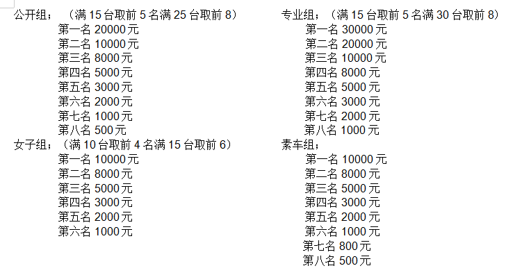 备注:本次比赛规则的制定与执行,将遵循国际汽联运动总则(及其附件),国际汽联越野赛通则,全国汽车越野赛通则等汽车类的竞技规则,并结合本次比赛的实际情况而制定。要求所有参赛者、及参赛车队必须熟悉本规则并严格遵守。相关规则的补充、修正和变化,都将通过本赛事组委会、或仲裁委员会决策后,按时间和编号依次发布公告,赛事组委会拥有关于本赛事所有事宜的唯一解释权。