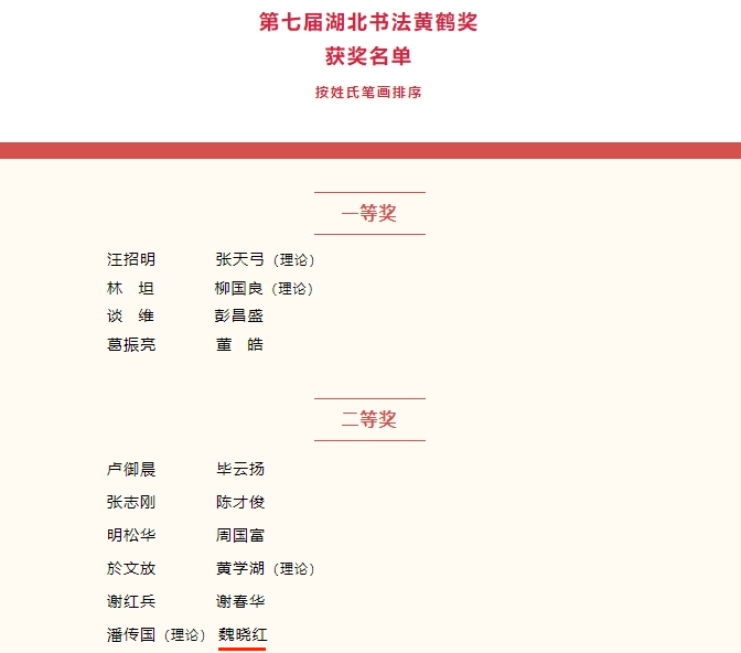 据悉,"黄鹤奖"评选四年一届,是由湖北省文联和湖北省书法家协会联合主办的全省性书法唯一专业奖,是湖北省书法的最高奖。黄鹤奖旨在表扬和奖励在书法艺术上做出突出贡献或取得较大成就的书法家、书法工作者。