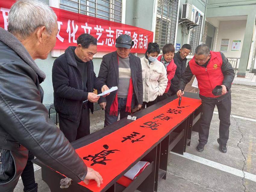 湖北日报客户端讯(通讯员陈茜)随着春节脚步临近,为营造欢乐祥和的节日氛围、向辖区居民送上新春的祝福,1月30日,远安县洋坪镇开展送福送春联活动,为辖区群众现场写春联、送福字。