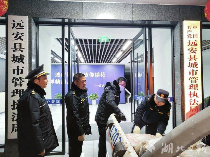 湖北日报客户端讯(通讯员杨先睿,孙明东,沙德益)2月21日凌晨2点,远安县雨雪冰冻恶劣天气来袭,远安县城市管理执法局闻令而动,立即启动应急响应机制,分片包干,统一调度应急储备物资,昼夜不歇开展除雪破冰行动,全力保障市民出行安全。