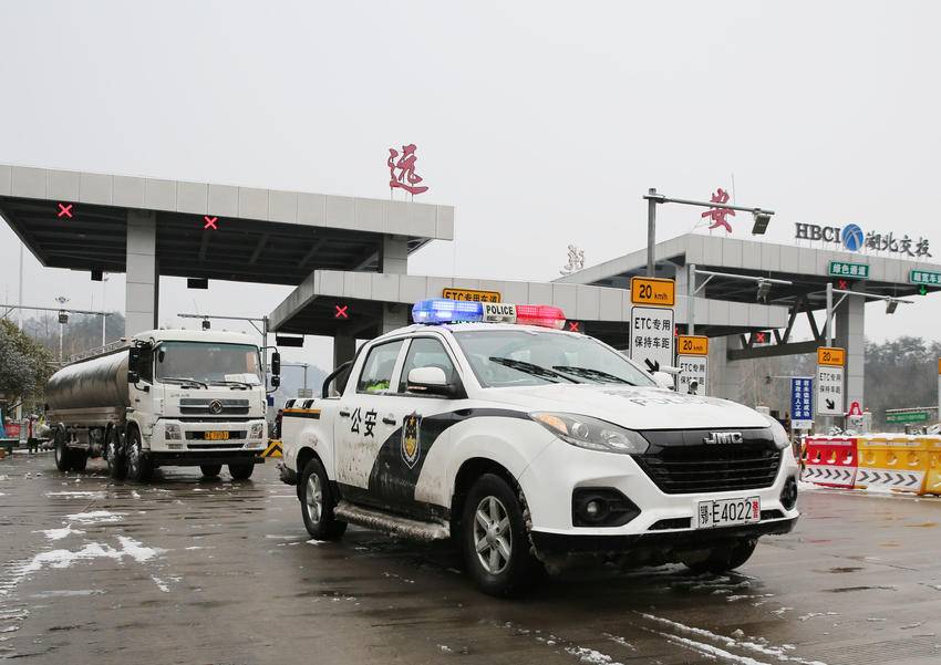 湖北日报客户端讯(通讯员李开明、周皓)2月22日10时20分,在保宜高速公路花林出入路口,远安县公安局民警用警车开道引领,数百辆车辆在缓慢通过收费路口、驶向高速公路时,鸣笛向远安县公安民警、党政干部和村民致谢,感谢他们免费送水送食,在风雪之夜温暖相伴。