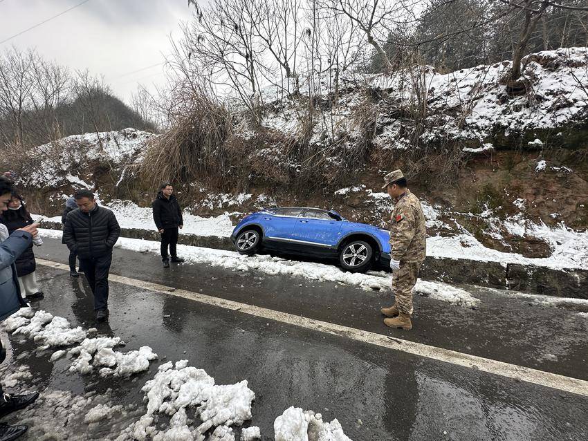 茅坪场镇“兵支书”谢华一大早就来到公路主干道,在道路转弯路段进行铲冰除雪工作。“前一天看到天气提示后,我就做好准备了,能多铲一点是一点。”“兵支书”谢华这样说。