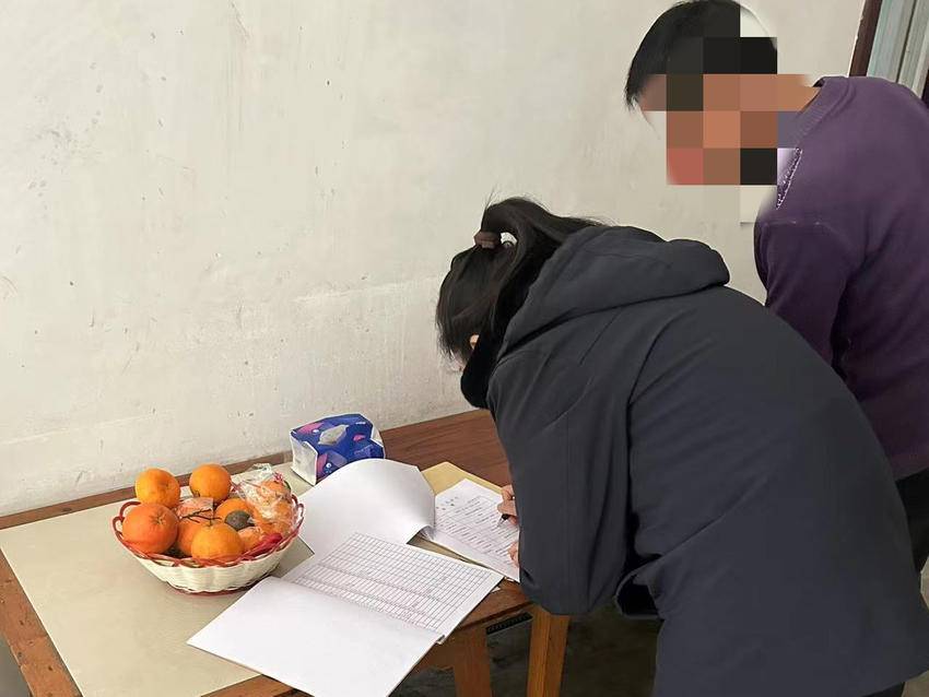 第一起案件的当事人一直处于“失联”状态,居住地址不详,电话亦是无法接通,给送达工作带来极大困难。干警便积极联络村委会,依托村委会“人熟、地熟、情况熟”的优势,在其带领下,一行人顺利来到当事人家中。当事人不在家,其父母对于签收法律文书颇有顾虑,不愿签字,但干警们并未放弃,而是将法理和情理相结合进行耐心解释,最终其父母签收了法律文书,并承诺联系当事人,鼓励其积极应诉。