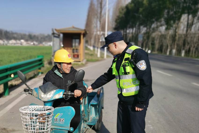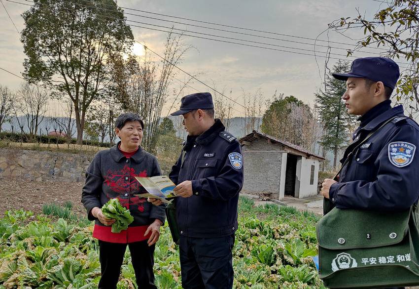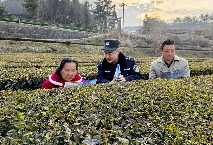 湖北日报客户端讯(通讯员李开明、王阳、薛剑)“彭大哥,今天下雨,路面滑,骑车慢点。”3月13日,远安县公安局嫘祖派出所民警肖晨在望家村下乡过程中,主动跟骑着摩托车去茶园干活的三组茶农彭宏涛打着招呼,从茶农春耕开始,肖晨每天都背着警务挎包奔走在望家村的田间地头,通过拉家常的方式,向茶农们宣讲防骗、防盗、交通安全出行等涉农安全生产常识。