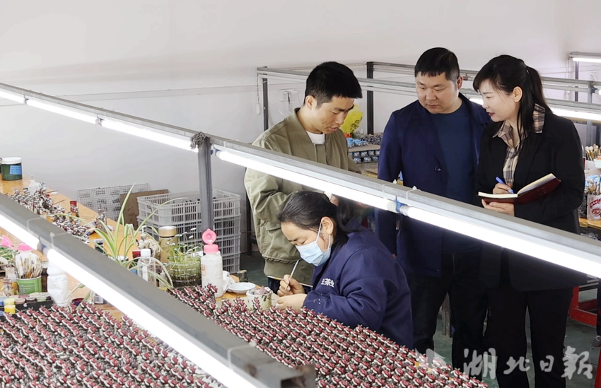 “左手放在桌子上,我们的右手,拿笔的手只能手腕放桌子上,这样就可以直接上色。”经过企业工艺指导师的培训,10多位村民快速掌握了工艺品彩绘方法。宝妈付琴开心的表示,“现在一天下来可以完成100多个,日工资八九十块钱,收入还不错。”