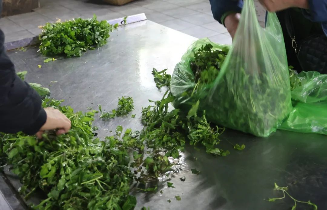 除了森林公园,近郊田地也是市民寻找野菜的地点。市民吴女士每年春天都会回农村挖野菜,野韭菜、蒲公英、葱、蒿子、鱼腥草都是她的囊中之物。她告诉记者,小时候在农村里吃了很多野菜,现在反而不常见了,她想忆苦思苦,尝尝小时候的味道。