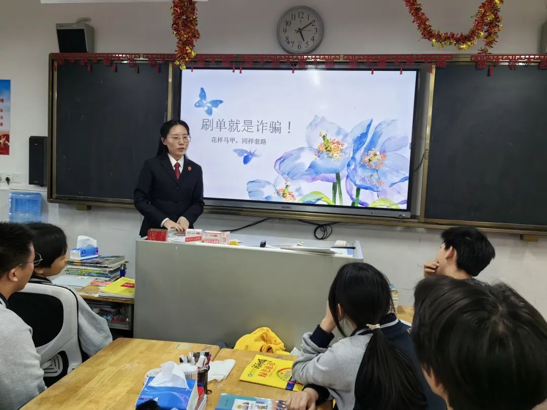 活动中,远安县法院刑事审判庭法官助理易青林为学生们讲述专题法治课。易青林从高中生日常学*生活最容易接触到的法律问题入手,结合部分典型案例,讲述了国家安全、未成年人保护(校园欺凌、网络诈骗、隔空猥亵)、刷单诈骗等内容,用专业的法律知识和平实的语言娓娓道来,为学生们带来了一场法治盛宴。