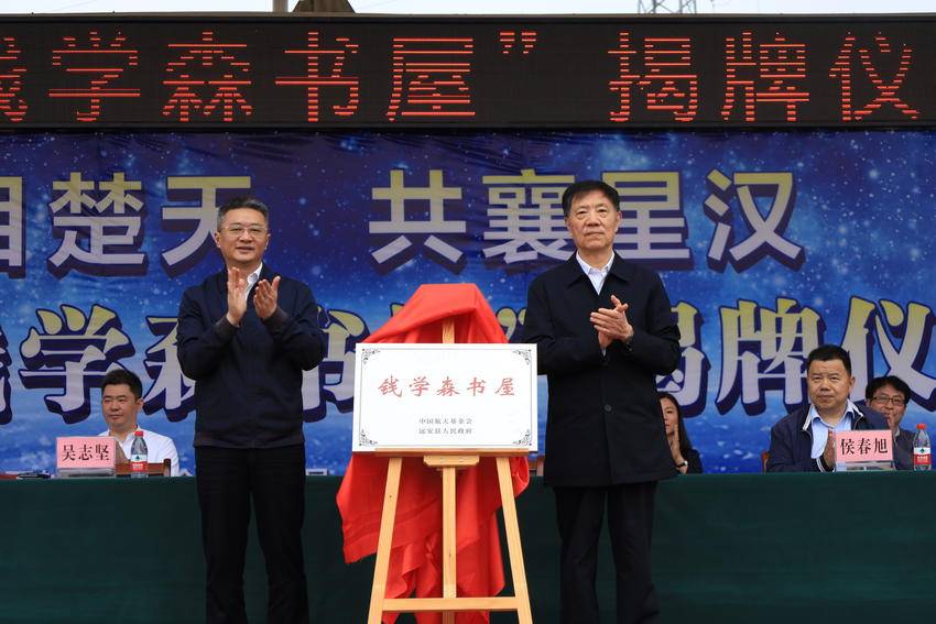 揭牌仪式上,吴志坚、刘朝共同为书屋揭牌,远安县与中国航天基金会签订《远安钱学森书屋捐建协议》。