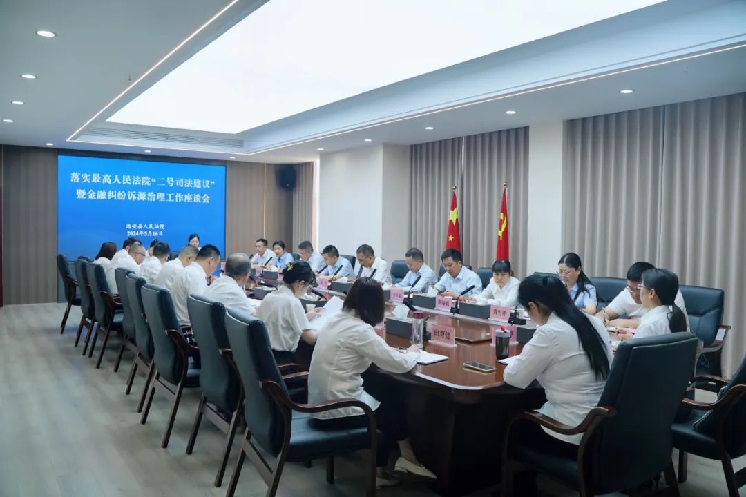 湖北日报客户端讯(通讯员 孙丽娟)5月16日,远安县法院召开落实最高人民法院“二号司法建议”工作暨金融纠纷诉源治理工作座谈会,邀请国家金融监管总局远安监管支局和辖区各金融机构主要负责人参会,共绘“法院+金融”新“枫”景。