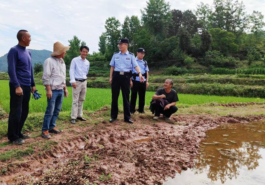 “马警官,你来得正好,麻烦你给我们评评理……”5月26日,当河口派出所教导员马世兵来到双坪村二组,正在放水整田的陈大伯与邻居张大哥因为引水灌溉发生矛盾。马世兵在了解具体情况后,根据双方田块的大小和灌溉时长进行调解,双方达成了一致意见,按照议定的时间段各自引水灌溉,互不干扰。