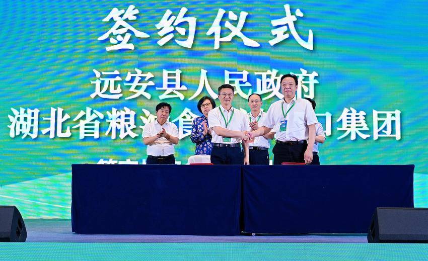 湖北日报客户端讯(通讯员王振涛)6月1日,2024中国食用菌产业年会暨第五届中国食用菌博览会在武汉召开,会上远安县人民政府与省粮油食品进出口集团签订食用菌全产业链战略合作协议,县长刘朝、副县长邓作军出席签约仪式。