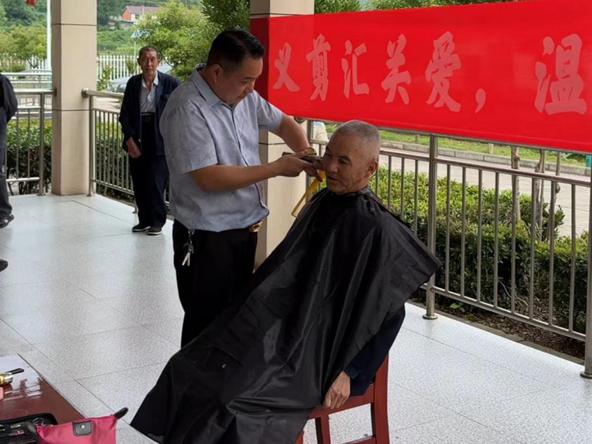 同时,志愿者到福利院开展义剪活动。理发前认真询问老人的需求,根据老人们的喜好和要求设计发型。志愿者一手拿细齿梳,一手拿剪刀,细致地为老人们打理发型。老人们看着镜子中的自己,脸上露出了开心满意的笑容。