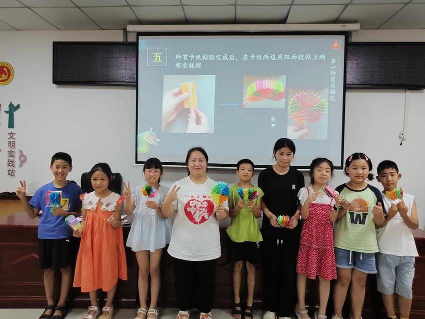 湖北日报客户端讯(通讯员黄小润、刘启航、兰梦洁)为弘扬中华优秀传统文化,增进学生对中国非物质文化遗产的了解,8月2日下午,华中师范大学外国语学院心火支教团远安队(以下简称“远安队”)在宜昌市远安县茅坪场镇开展了以“非遗纸翻花”为主题的特色手工课程。本次课程由远安队队员谢鑫瑶担任主讲教师。
