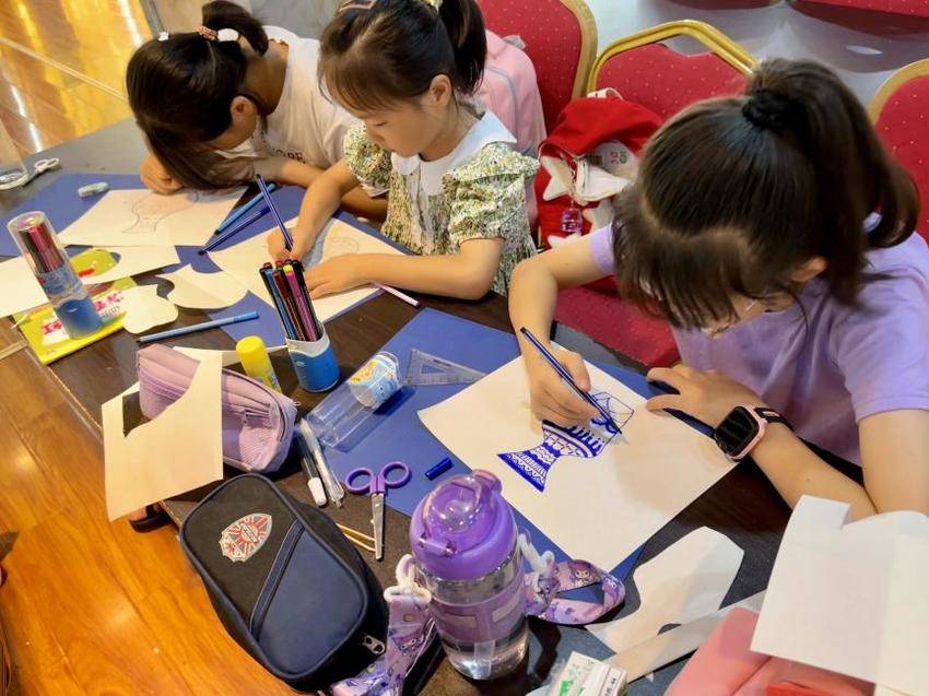 作品创作过程中,学生们在刘启航的悉心指导下,纷纷拿起剪刀、彩纸,开始了自己的青花瓷立体画创作之旅。他们或低头沉思,或相互交流,在作品中融入了自己的理解与创意。从设计草图到剪刻成型,从折叠卷曲到粘贴装饰,每一步都凝聚着学生们的汗水与智慧。在他们的巧手下,一幅幅色彩斑斓、形态各异的青花瓷立体画逐渐成形,它们或简约大方,或繁复精美,无不展现出学生们对传统文化的深刻理解与独特诠释。