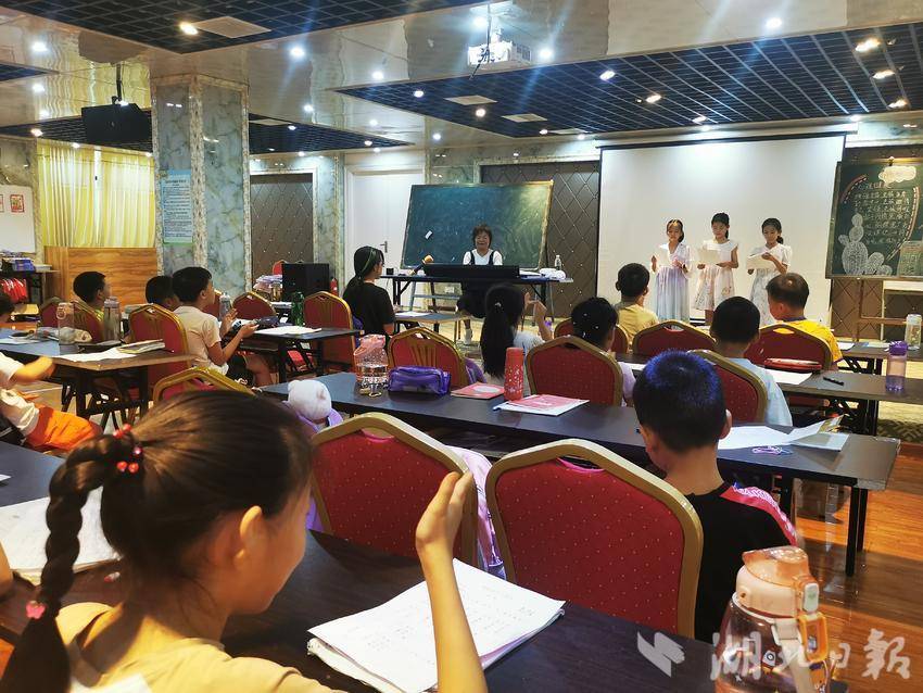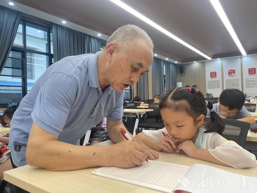 活动中,2名退休教师发挥自身专长,深入企业、社区“希望家园”为孩子们辅导授课。在广宜服饰有限公司“希望家园”暑期班,退休教师汤晓梅重回三尺讲台,用温暖的歌喉向孩子们献唱一首《想起当年毛委员》,同学们手捧歌词,聚精会神、模仿着老师的动作纵情放歌。在鸣凤镇鸣凤社区“希望家园”,退休教师李世明耐心细致地向孩子们讲解握笔姿势、笔画顺序等要点,鼓励孩子们多观察、多思考、多练*,同学们全神贯注、正襟危坐,认真学*握笔、落笔、临摹方法,脸上洋溢着对书法艺术的喜爱和追求。