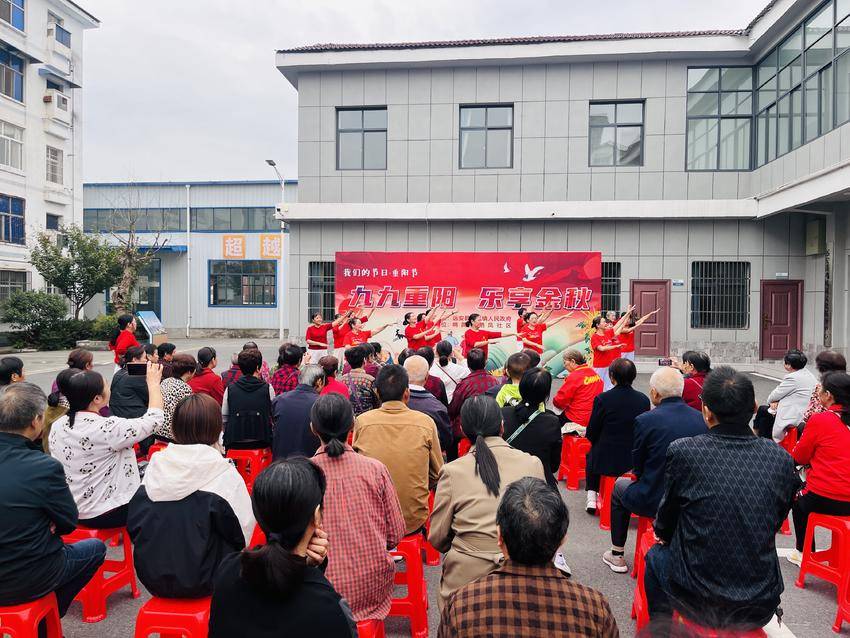 活动现场热闹非凡,在舞蹈《最美夕阳红》中热闹开场,舞蹈队成员大部分是已步入花甲的退休人员。在接下来的两个小时里,《鹅嫚》《苹果香》等多个节目轮番上阵,将活动推向了高潮。随后,由县中医院陈院长带领大家做经络操,纠正了大家日常生活中错误的健身姿势,并讲解了几个简单的适合老年人的健身动作。最后,为了促进社区居民之间的互动交流,还举办了棋牌比赛,让大家在轻松愉快的氛围中感受浓郁的节日气氛。