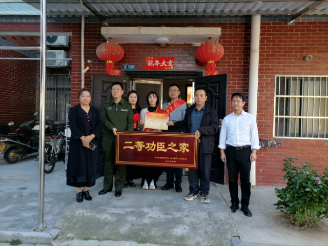 湖北日报客户端讯(通讯员 张晓峰)近日,当阳市人武部、当阳市退役军人事务局一行为当阳市玉阳街道两名荣立二等功的现役军人黄云轩、于华翔家庭送去“二等功臣之家”匾牌、立功喜报和慰问金。
