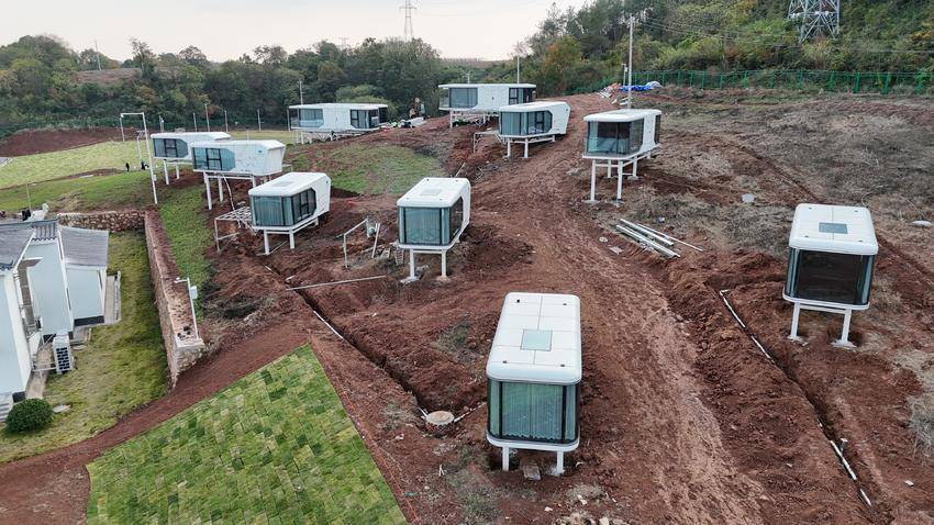 除了太空舱民宿外,活动广场、智慧大棚、研学中心等主体建筑也已完工,其中部分已经投入使用,其余部分将在11月底之前陆续完工。