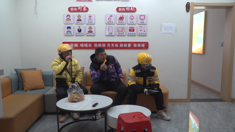 外卖员张涛说:“工会驿站为我们户外工作者确实提供了很多便利,我们闲暇之余可以进来喝喝水、聊聊天,也可以免费给手机充电,为我们节约了很多的时间。”