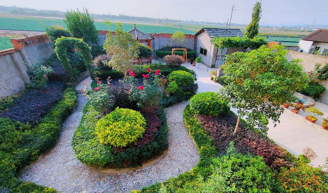 村民邓雪姣自己出资,将自家庭院改造成了一个小花园,秋千、凉亭林立院中,映照着冬日暖阳,好不惬意。