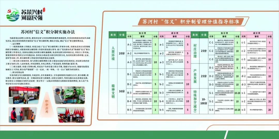 一张清单注重长治长效。苏河村将“清洁家园”纳入村规民约,约定每周五为“清洁家园日”,健全管护机制,抓住关键节点,引导群众养成良好卫生*惯。建立《苏河村环境卫生评价细则》,与村民共同商议设置评分标准、加分项目,纳入“超市积分”管理。健全完善自治组织,推选“道路管家”“巡逻小队”,对村内环境卫生进行常态化监督、巡查和劝导,形成“抓两头促中间”“抓试点湾落带周边湾落”的常态化管护机制,不断巩固提升环境整治成果。