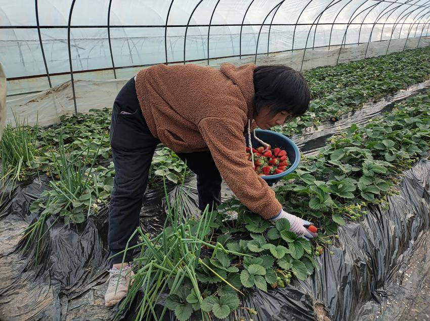 小小草莓不仅为种植户带来了可观的经济效益,也拓宽了当地村民的致富路。每逢育苗、种植、收获等时节,草莓园都会聘用周边村民进行整地、除草、栽种、采摘等工作,全年吸纳闲散劳动力60余人,带动更多的村民鼓起了“钱袋子”。