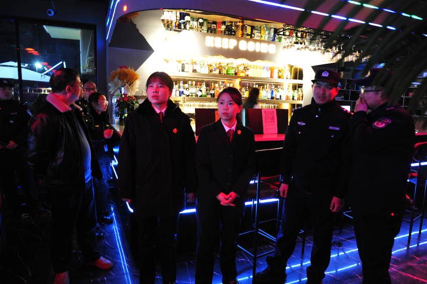 湖北日报客户端讯(通讯员王龙慧)1月9日晚,鸣凤城区部分娱乐场所内,检察干警和行政执法人员正在忙碌穿梭,了解相关情况,开展现场检查。