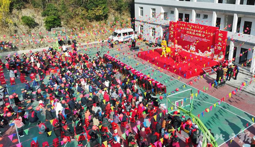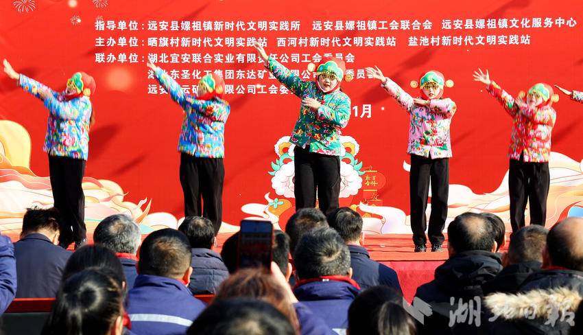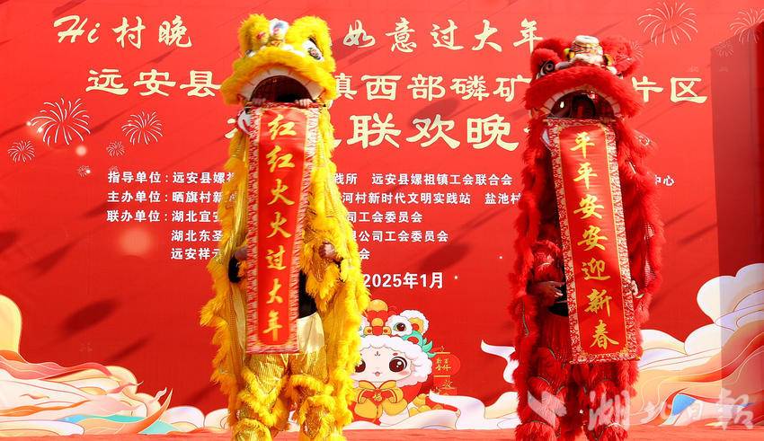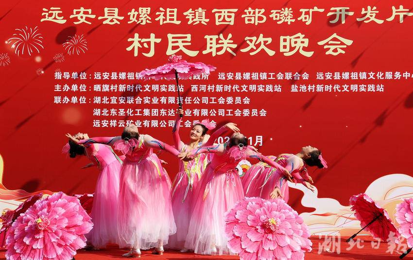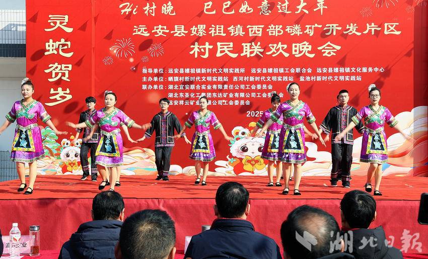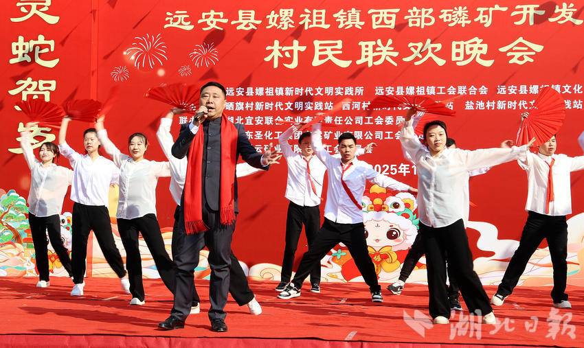 湖北日报客户端讯(通讯员伍玉华、何磊、程霜、郑言科)春节将至,各地农村张灯结彩,浓浓的年味儿扑面而来。在远安县嫘祖镇晒旗村,西部磷矿开发片区的村民们欢聚在一起,欣赏歌舞表演、参加趣味活动,在欢声笑语中表达对新年的向往和美好生活的热爱。