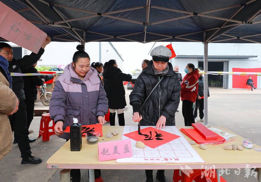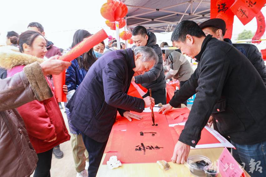 湖北日报客户端讯(通讯员 刘在洪 陈元元)在新春佳节来临之际,为弘扬中华传统文化,丰富居民的精神文化生活,营造浓厚新年氛围,1月23日,宜昌市社科联、宜昌市书法家协会、宜昌市摄影家协会、宜昌市人力资源管理研究会联合当阳市河溶镇新时代文明实践所、当阳市河溶镇党群服务中心在河溶镇建国村举办“我们的节日·春节”主题活动。