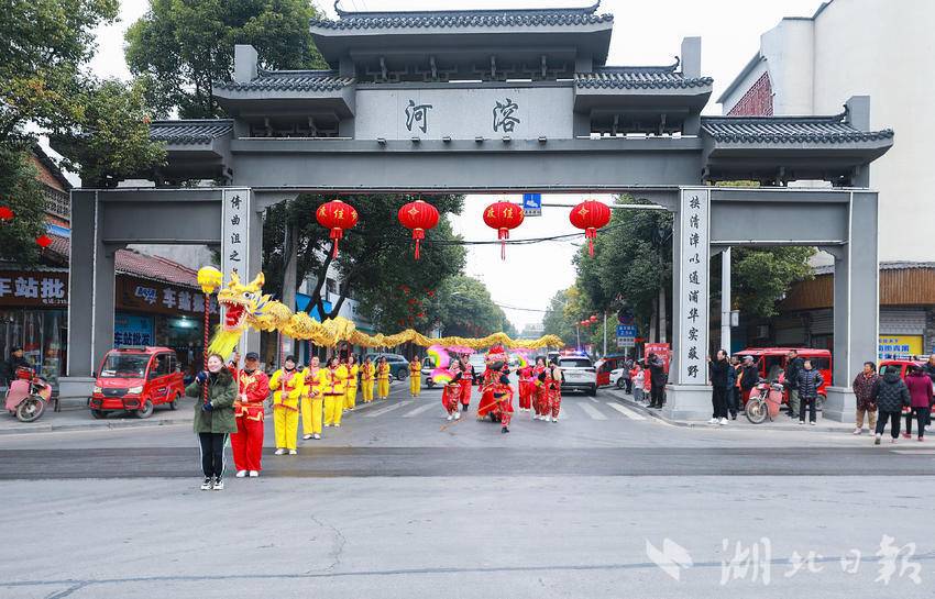 上午九点,由当阳市河溶镇古镇文艺志愿服务队组织的采莲船与舞龙队伍从集镇牌坊处出发,绕集镇主干道至莫家湖文化广场进行游行,给集镇增添了浓郁的节日氛围。随后,文艺汇演在莫家湖文化广场精彩上演,歌舞、架子鼓、非遗文化表演等引来群众阵阵掌声。