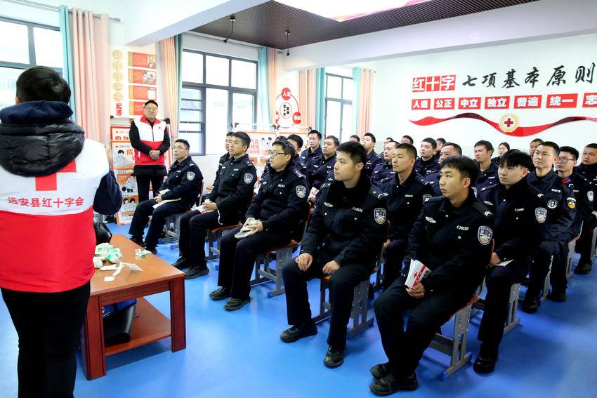 湖北日报客户端讯(通讯员李开明、邬雨涵)2月21日,远安县公安局会同该县红十字会组织开展应急救护培训,对30名公安基层一线民警开展心肺复苏、气道异物梗阻、创伤包扎和常见急症等应急救护技能培训,从此拉开远安县公安局2025年春季警事技能大练兵活动的序幕。
